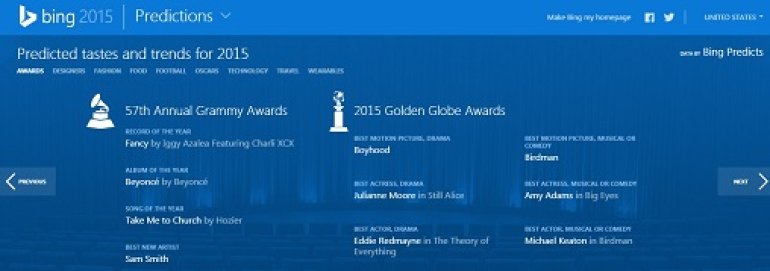 Например, система может обнаружить слух среди пользователей Twitter, что квотербек одной из команд скандалил всю ночь со своей женой перед игрой и, следовательно, крайне сомнительно, что он будет на вершине своей формы. И, хотя подобные слухи могут оказаться необоснованными, в них зачастую присутствует зерно правды, что даёт статистическое преимущество системе. Создатели Bing Predicts утверждают, что внимательный анализ так называемой «мудрости толпы» на самом деле повышает точность предсказаний системы, как минимум, на 5%".