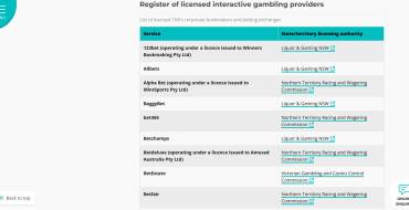 На официальном сайте ACMA есть раздел "Check if a gambling operator is legal" (Проверить, легален ли игорный оператор). В нем можно найти список операторов и органов, выдавших лицензию.