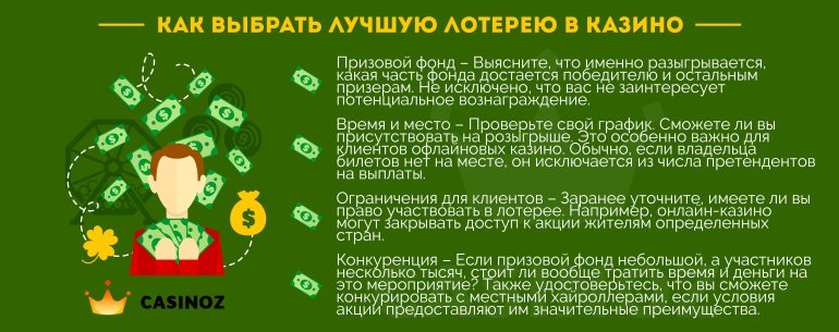 В обзорных статьях о лотерейных розыгрышах в казино подобные мероприятия рассматриваются по следующей схеме:
