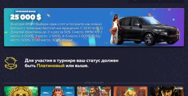 Это топовый слот-турнир для обладателей платинового статусов. В нём можно выиграть автомобиль БМВ Х5, а также крупные денежные призы.