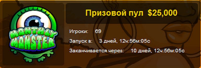 Вступительный взнос для участников слот-турнира $ 25K Monthly Monster составляет $25.